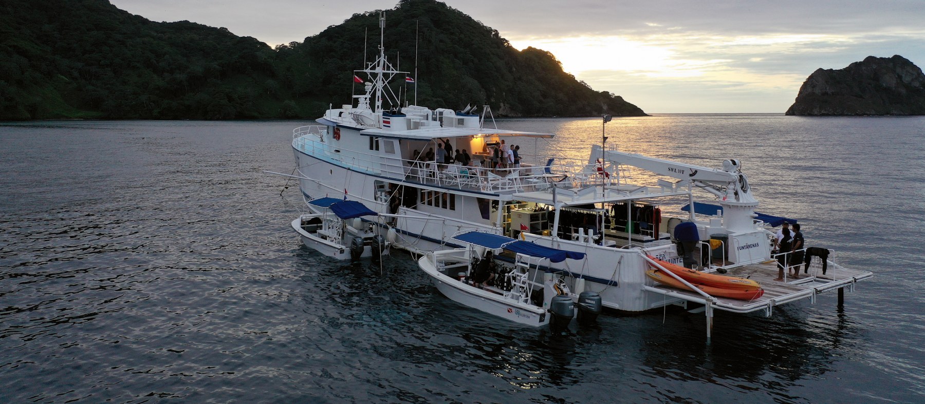 After hundreds of diving expeditions, the Sea Hunter has evolved into the consummate hybrid of luxury and utility. This 115-foot (35 meters) cruiser boasts a global reach, and was specifically conceived for long-range journeys to remote destinations like Cocos Island.